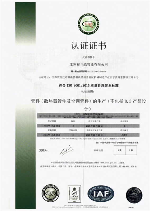 布蘭森熱傳輸新材有限公司二○○七年創立于廣東省深圳市,二○○九年成立江西布蘭森熱傳輸新材有限公司,2020年成立江蘇布蘭森管業有限公司,公司坐落在江蘇省泗洪縣青陽工業園內,公司自購廠房,投資1.5億元人民幣,廠房占地面積42畝,廠房建筑面積1.5萬多平方米,員工人數150多人,合作客戶200...